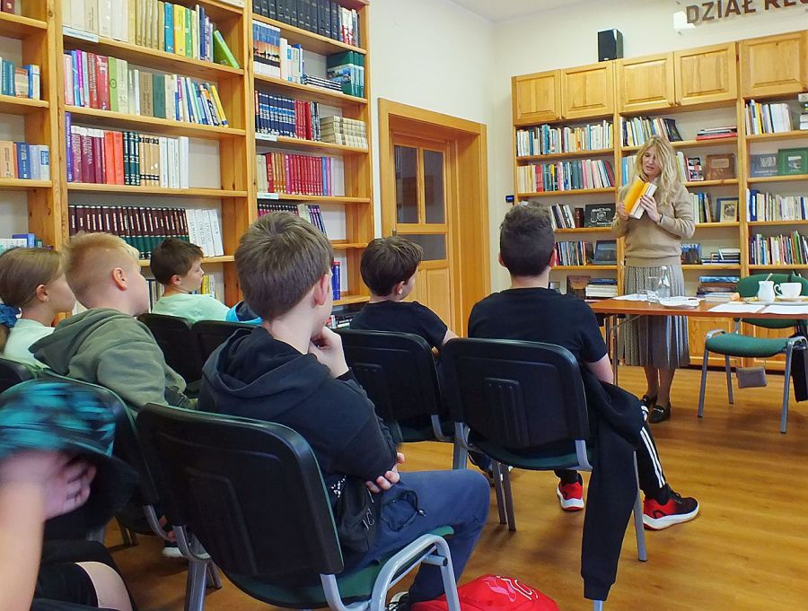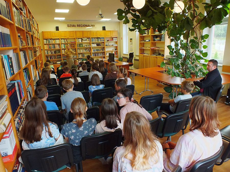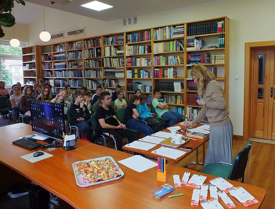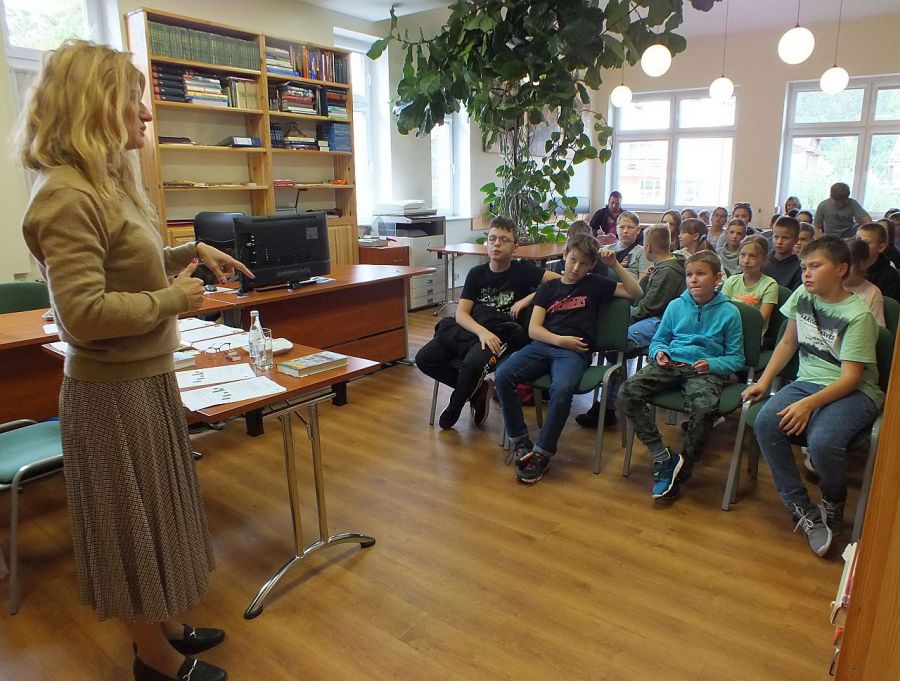 W spotkaniu z pisarką udział wzięły dzieci z klasy Va i Vb ze Szkoły Podstawowej Nr 2 w Polanicy-Zdroju wraz z nauczycielem języka polskiego Panem Damianem Naryńskim. Było to spotkanie pełne emocji i rywalizacji. Uczniowie bowiem rozwiązywali zaproponowane przez autorkę zagadki i zadania logiczne, wcale nie takie proste. Poradzili sobie z nimi wyśmienicie. Po dokładnym sprawdzeniu odpowiedzi, zwycięzcą została klasa Vb. Nagrodę od pisarki, książkę z dedykacją otrzymał Maciek Kolodiy. Gratulujemy.